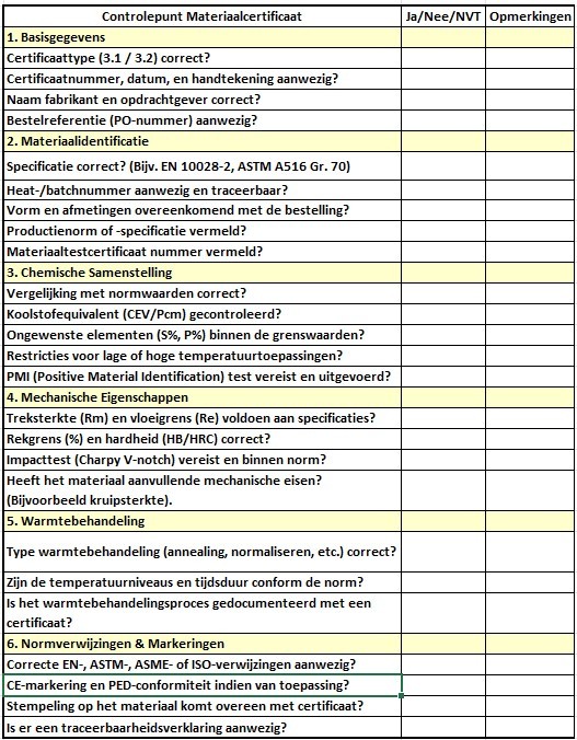 Hierbij een handige lijst waarmee je materiaalcertificaten snel en efficiënt kunt controleren. Zo voorkom je verrassingen en borg je de kwaliteit van materialen in jouw projecten.